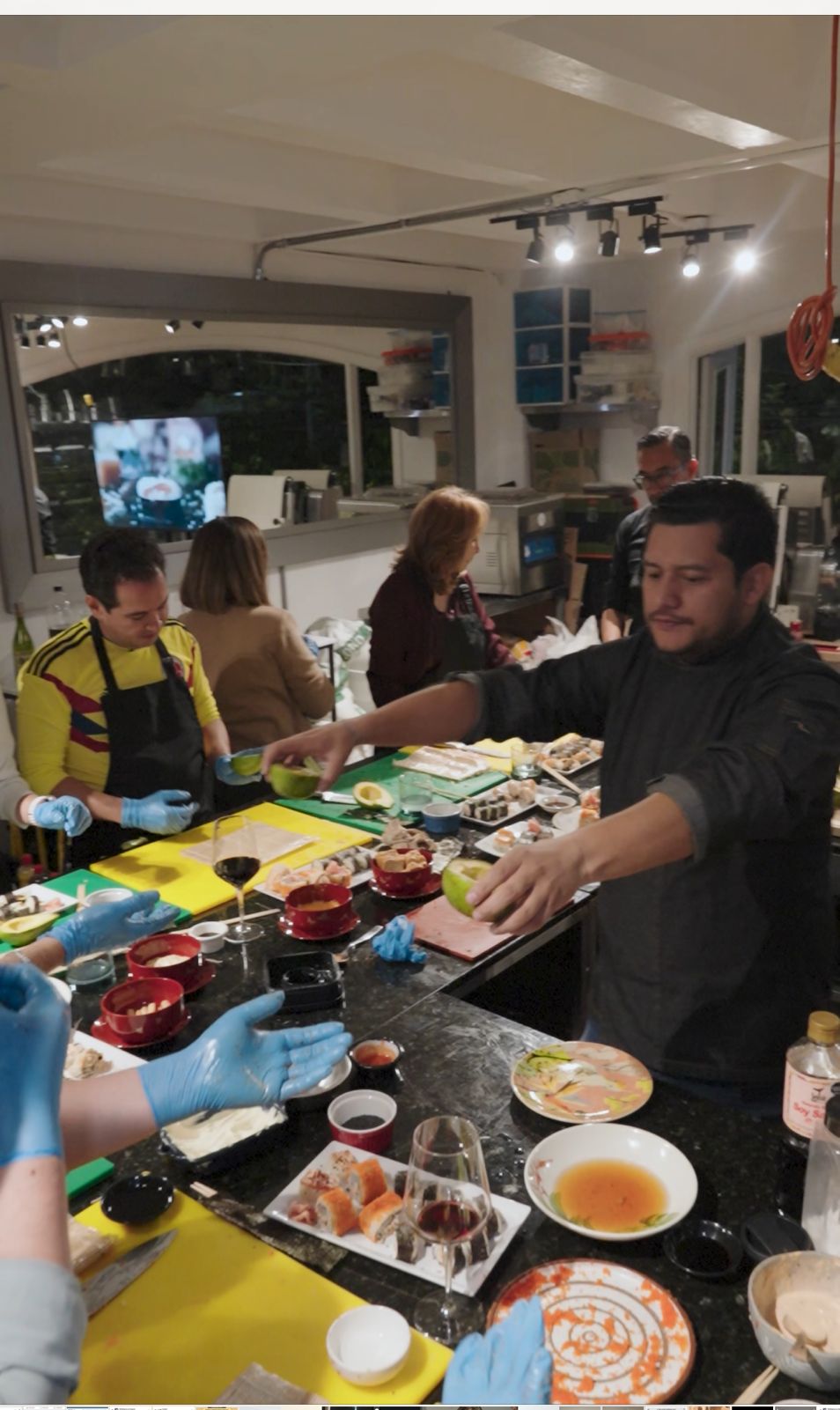 INCLUYE: -3 horas de clase dictada por el chef entrenador de celebridades, de Masterchef, y docente por más de 8 años en reconocida escuela de cocina del país. Adicionalmente apoyo de 2 chef más durante la clase. -Ingredientes de alta calidad -Recetario Virtual -Preparación de rollos de sushi, para disfrutar al final de la clase en nuestra espectacular terraza en Usaquén Bogotá y llevarse algunos a su casa. -Bebidas alcohólicas (acordadas previamente) y no alcohólicas ilimitadas -Servicio de mesero incluido -Delicioso postre sorpresa.