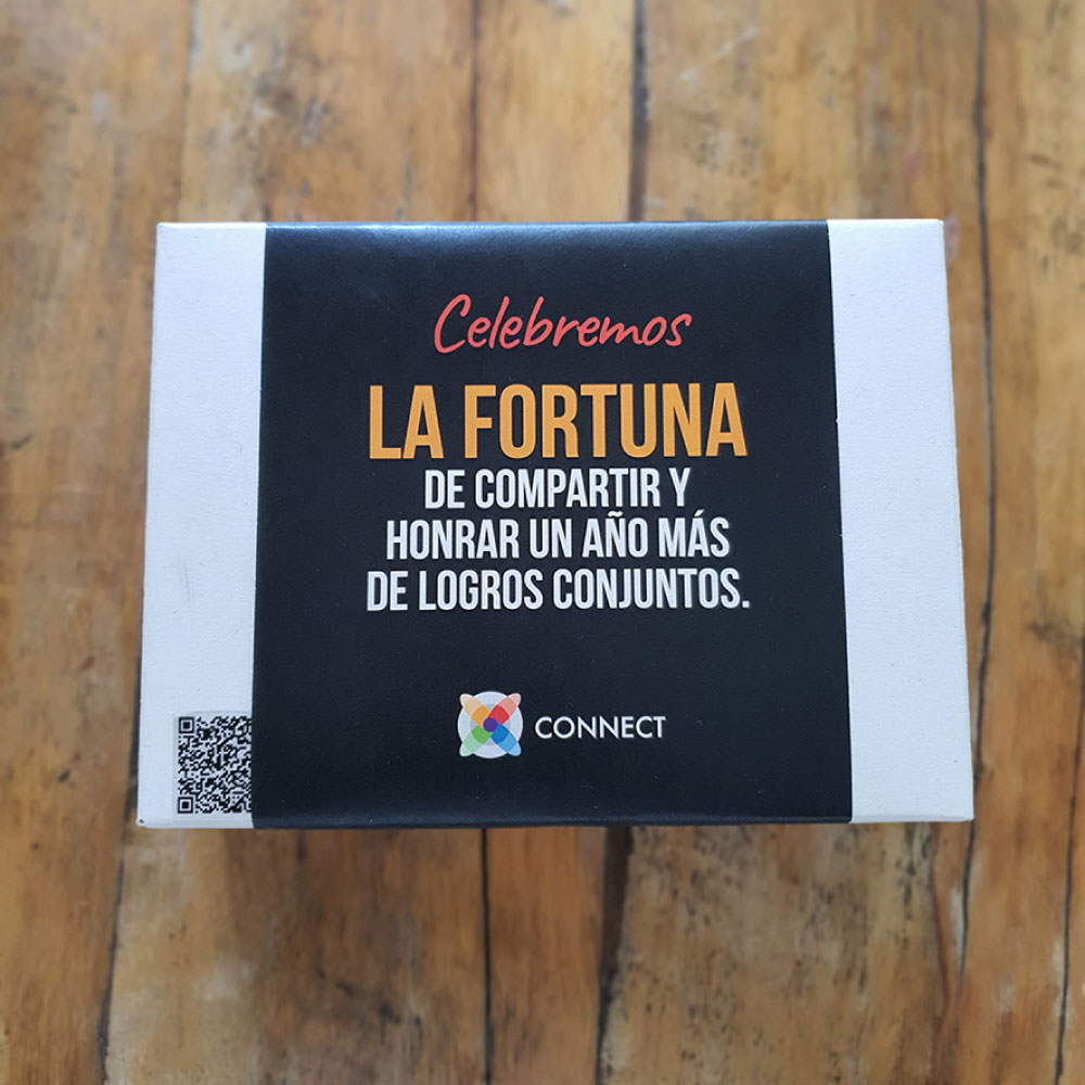 Galletas de la fortuna personalizadas. Regalos para comunicar cultura de marca, objetivos, valores, de una manera muy original. Se pueden personalizar desde los mensajes, los empaque y las cajas, cantidades de galletas a elegir.
