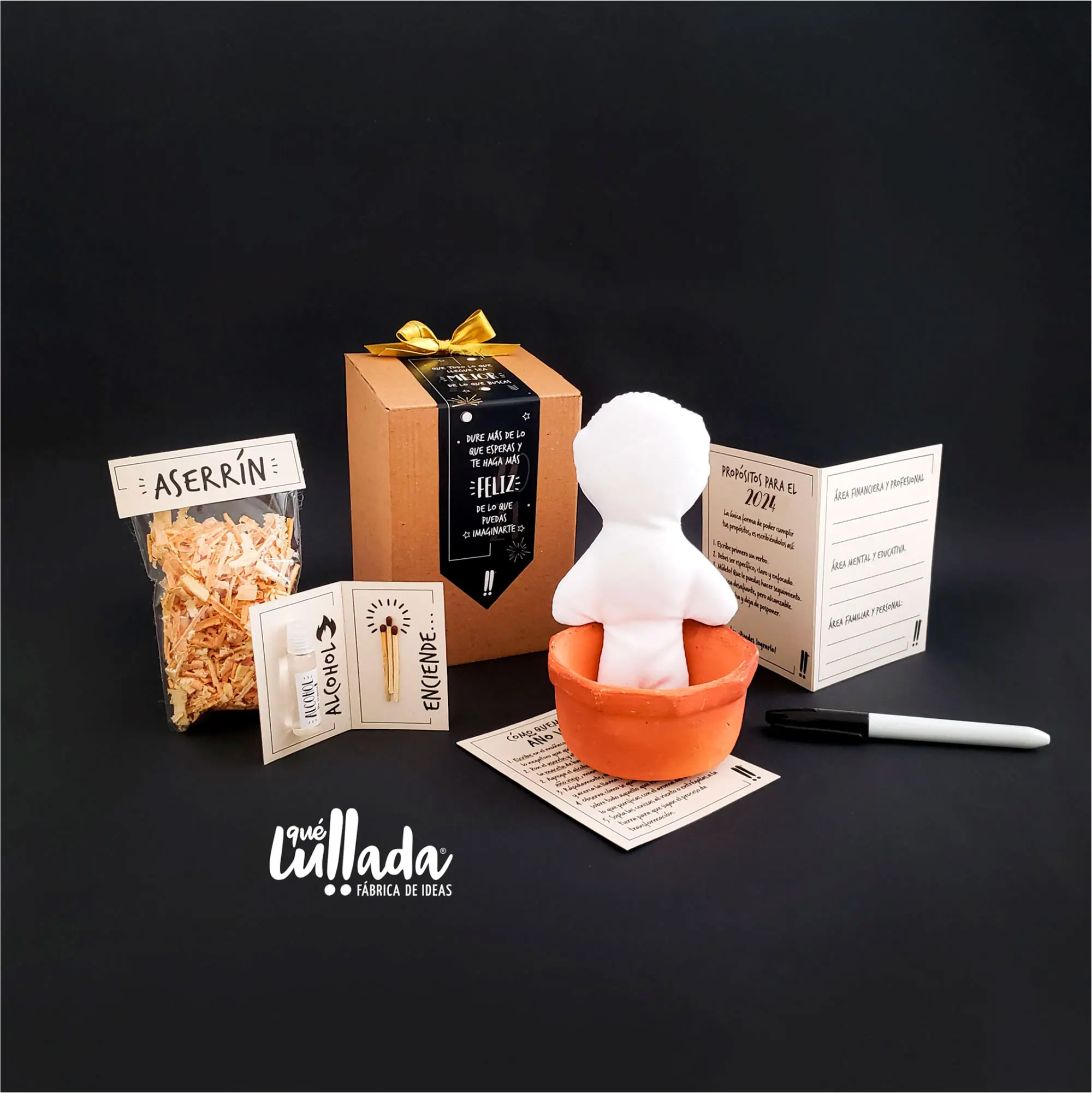 Este Kit de Año viejo contiene: * Un mini carrancho para escribir todo lo malo, lo feo y lo negativo del 2023, relleno con incienso * Una Maceta * Fósforos de seguridad * Aserrín * Una botellita de alcohol * Un marcador * Instrucciones de uso y tarjeta de resoluciones Todo esto empacado en una caja lista para recibir el 2024, si deseas llevar más de una unidad, tienes un descuento !! Aprovecha 12 o más unidades $31.000 cada uno.