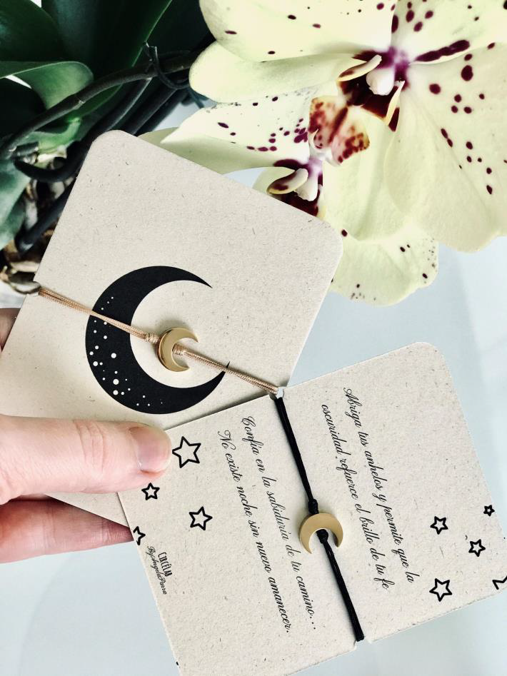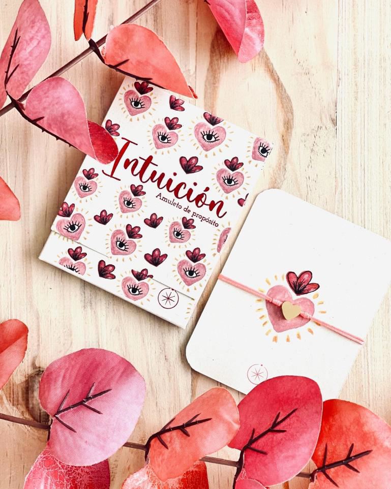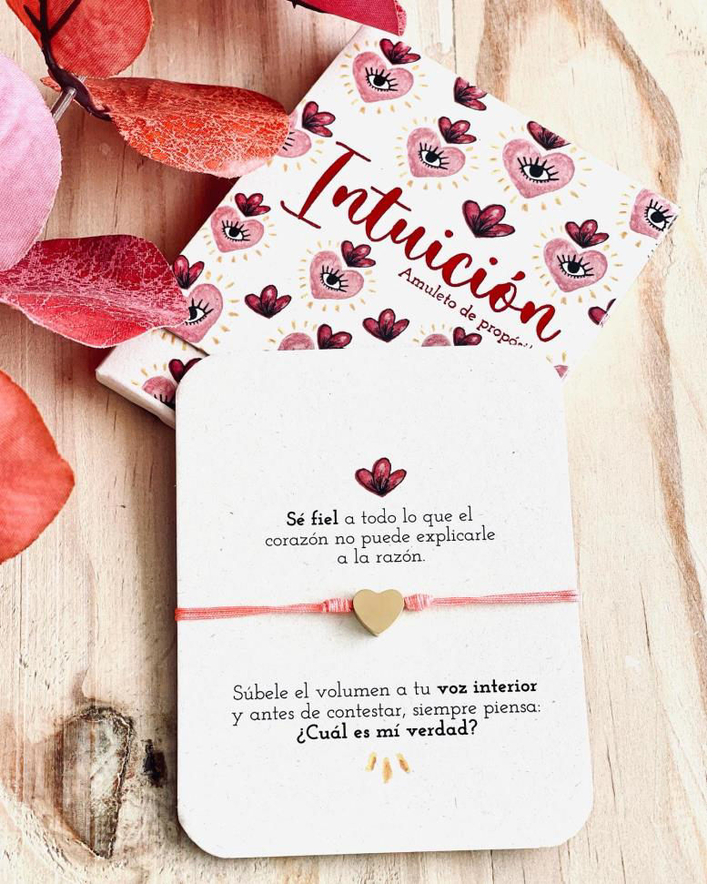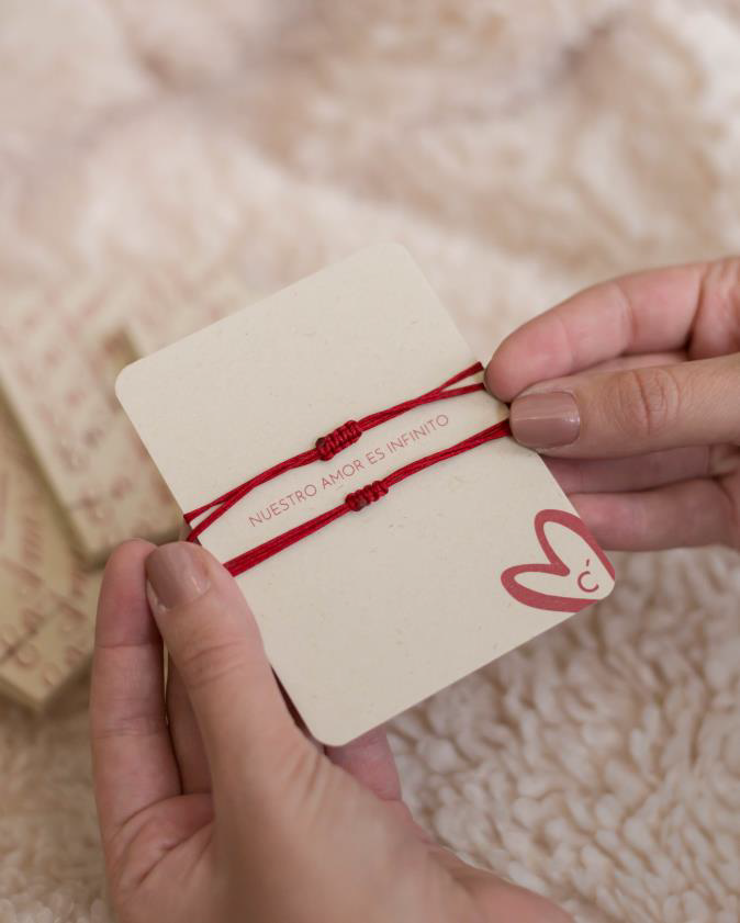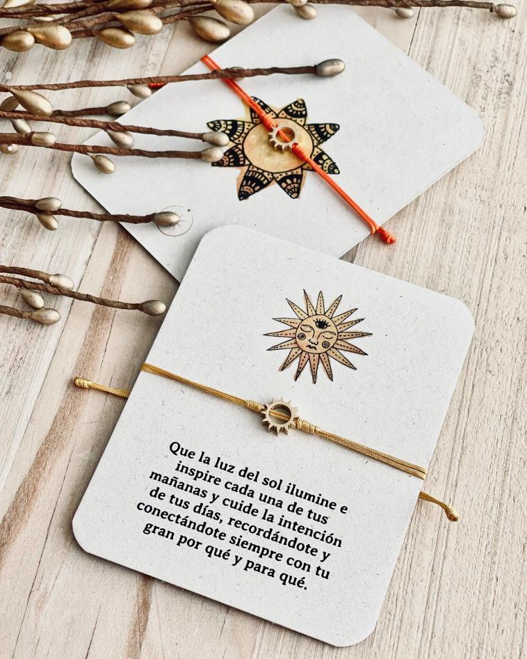 Contiene: Pulsera en su cajita con mensaje correspondiente según propósito, envuelta en tula de lona, con mini ramo y tarjeta.