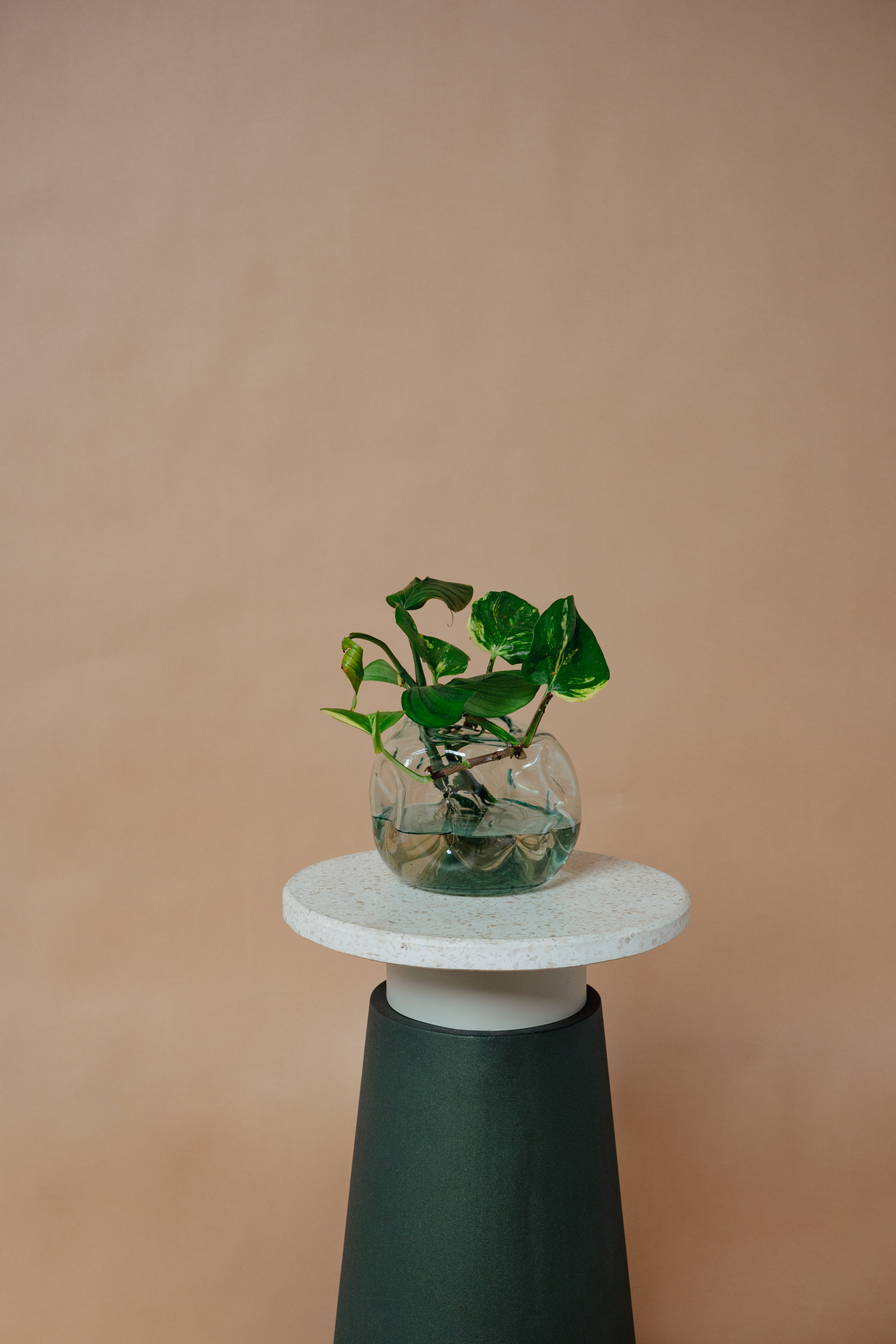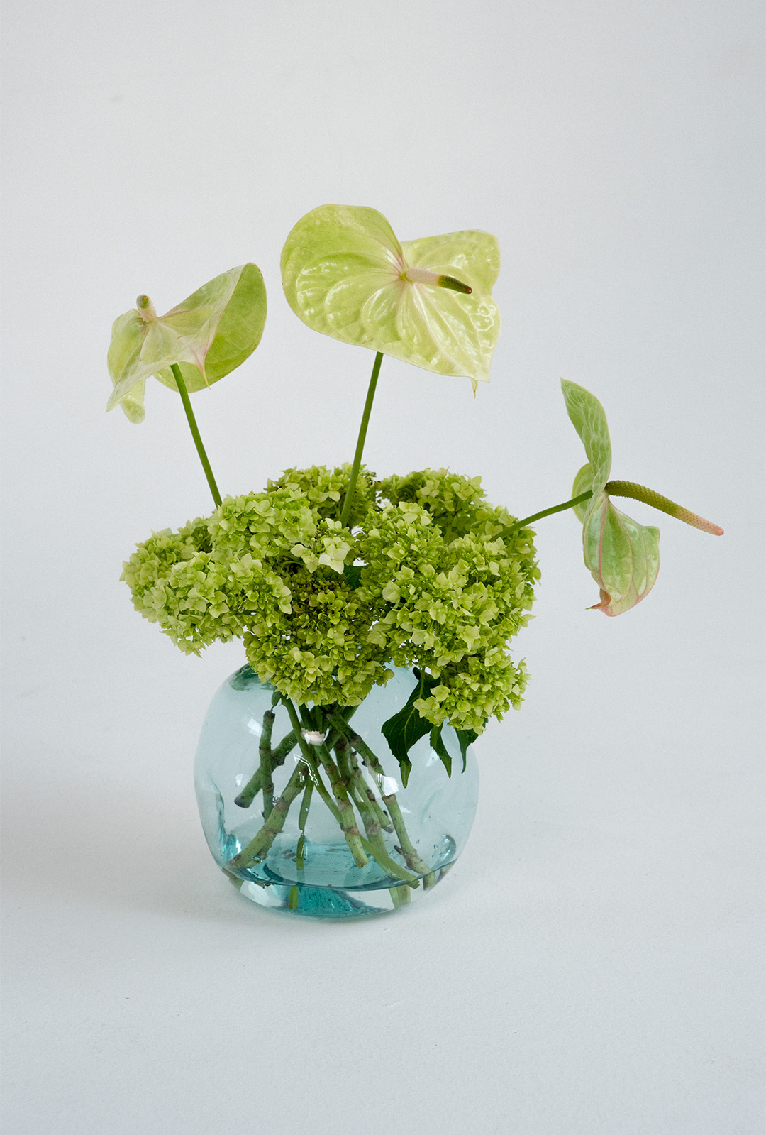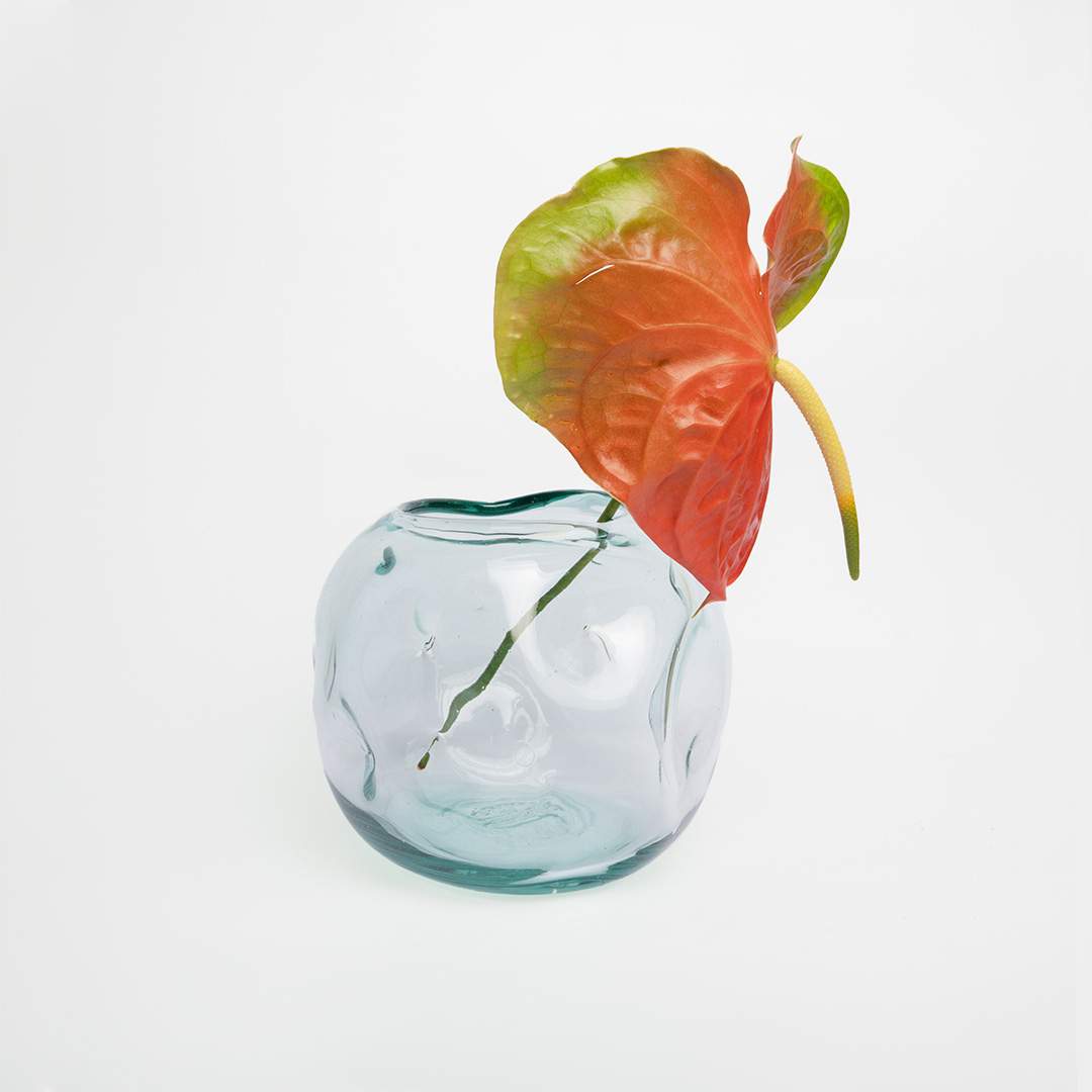 Memoria es un florero mediano de boca pequeña, perfecto para astromelias, crisantemos y gerberas. Esta pieza es hecha a mano y fabricado en vidrio 100% reciclado de botellas y ventanas. No usamos moldes, por esto, cada pieza es única y puede variar (un poco) de tamaño y color.