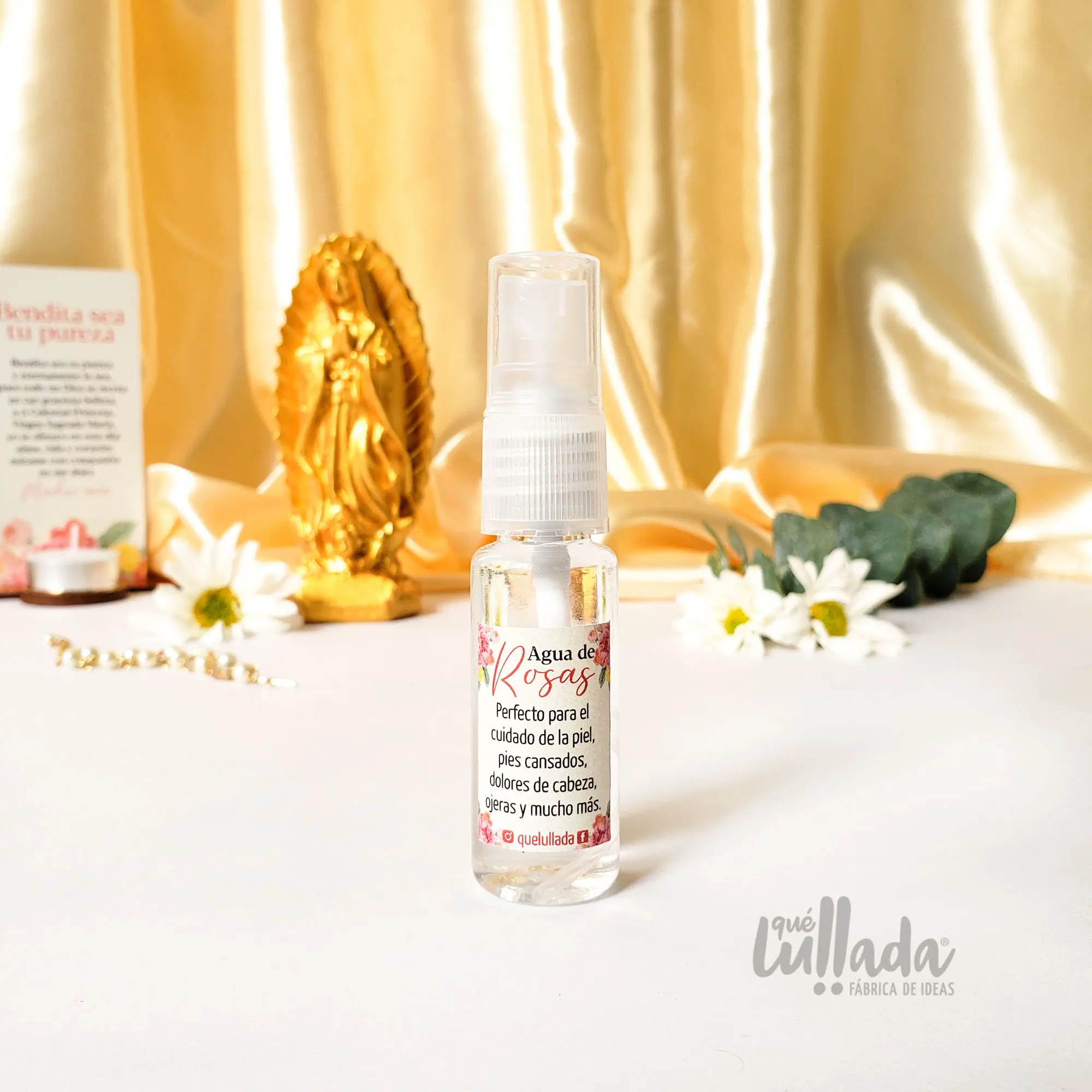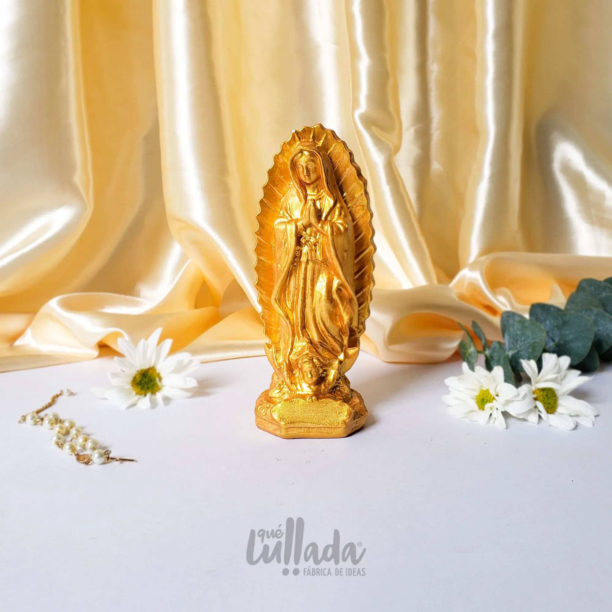 La Virgen de Guadalupe elaborada en yeso de 13 cm de altura, se encuentra dentro de una caja de madera decorada y perfumada con el aroma de rosas que también lo incluye dentro del spray de 20ml, con muchos beneficios para utilizarlo, también, incluye un denario elaborado en oro gold filled, para que lo lleve a todo lugar, dentro de su recipiente para guardarlo.