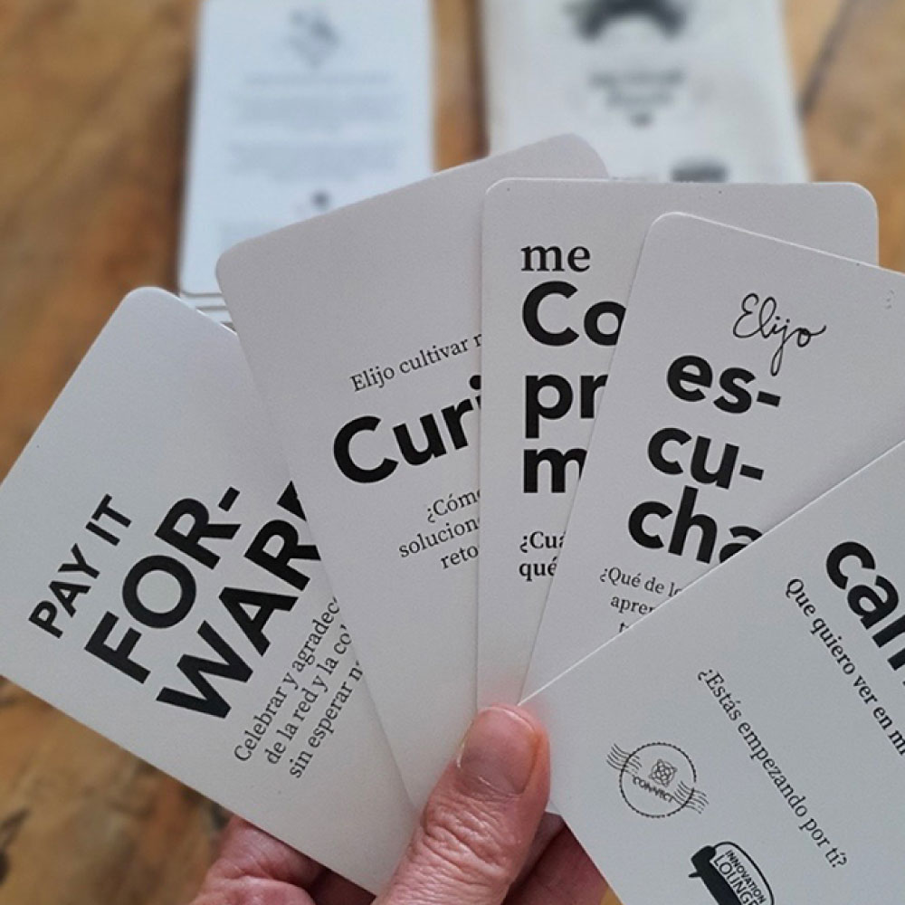 Kit de 21 cartas que te invitan a elegir y estar presente para transformar tus pensamientos, palabras y acciones. Puede ser utilizada en facilitaciones, grupos de trabajo o de manera personal. Personalizable según cantidades.