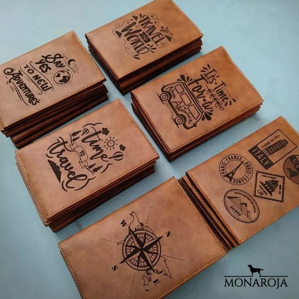 Porta pasaporte elaborado en cuero vegano de alta calidad con 4 compartimientos, dos para tarjetas y dos para pasaportes.