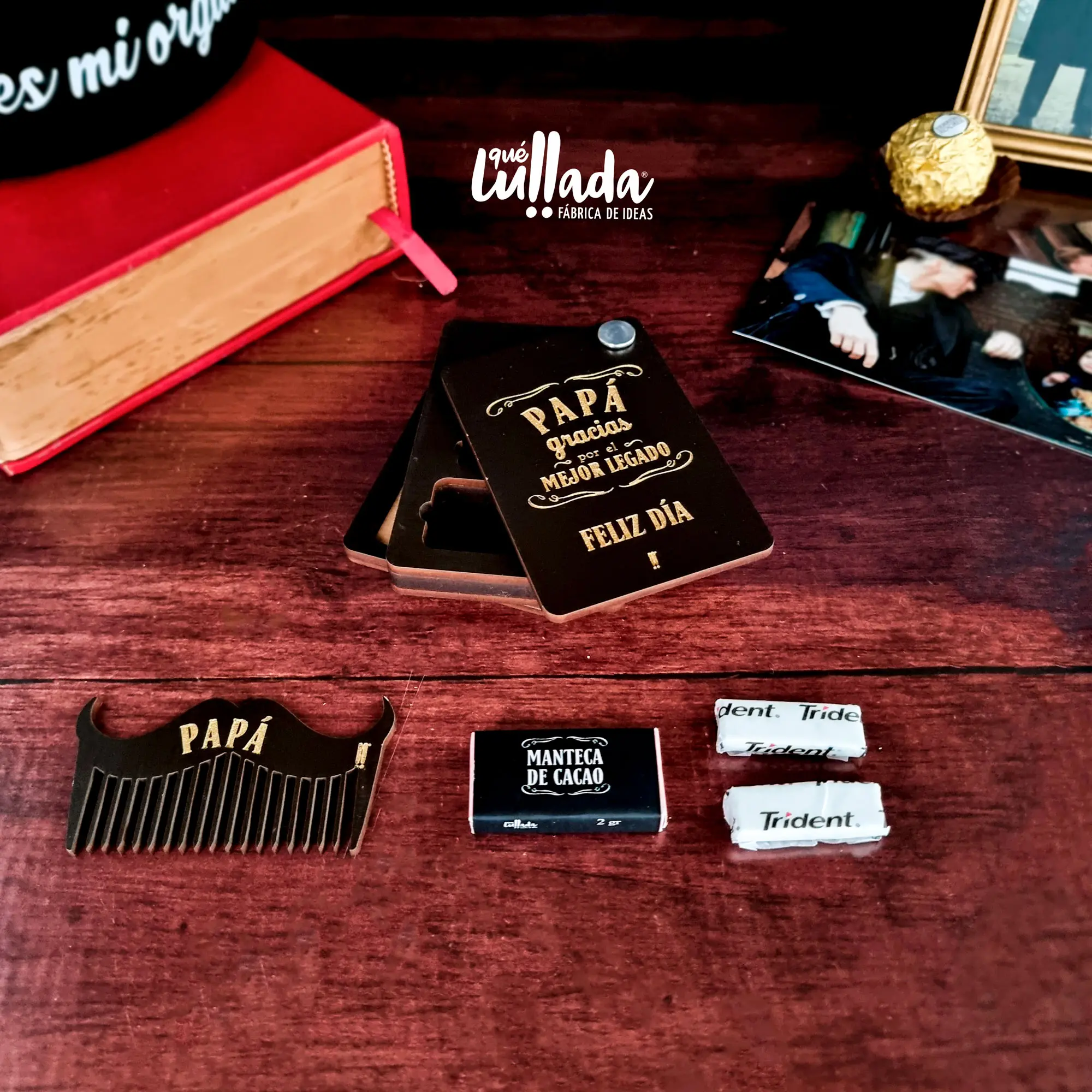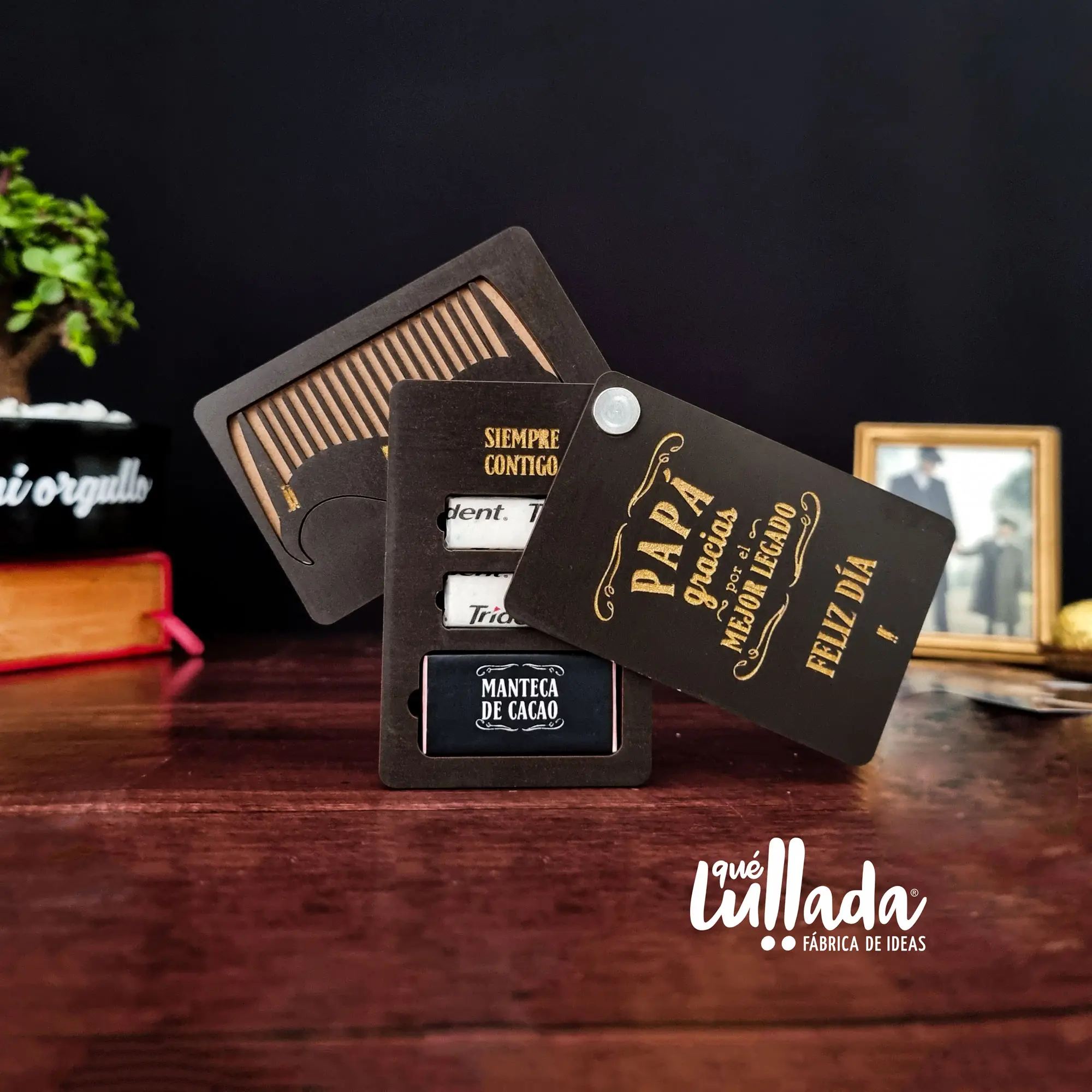 Llegó la solución para esos hombres que les encanta cuidarse y siempre estar impecables en todo lugar, NUEVO!! Porta Pocket Hombre Lleva lo indispensable para estar bien en este Porta Pocket, elaborado en madera resistente, con dos compartimentos, uno, en donde encontrarás una Butter Stick de cacao o más llamada barra de manteca de cacao, para que siempre los labios se permanezcan hidratados (sonrisas no quebradas y/o besos apasionados) y dos gomas de mascar sin azúcar, con el delicioso sabor mentolado de Trident. En el otro compartimento encuentras, una peinilla de madera, para que el cabello y/o la barba se encuentre siempre en su puesto. Lo puedes llevar a cualquier lugar, dejar en la guantera del carro, en el escritorio e incluso en el bolsillo, ya con este discreto diseño, solo él y tú sabrán qué lleva dentro. Qué esperas para “echale una mano” a la imagen personal de ese hombre favorito. El Porta Pocket es un artículo de madera color chocolate oscuro o wengué de medidas 8.7 cm x 6.7 cm y contiene en su interior: -Dos gomas de mascar sin azúcar, con el delicioso sabor mentolado de Trident. Cada una de 1.7 gr -Una Barra de manteca de cacao de 2gr -Una peinilla de madera. Se encuentra empacado en un estuche tarjeta listo para regalar.