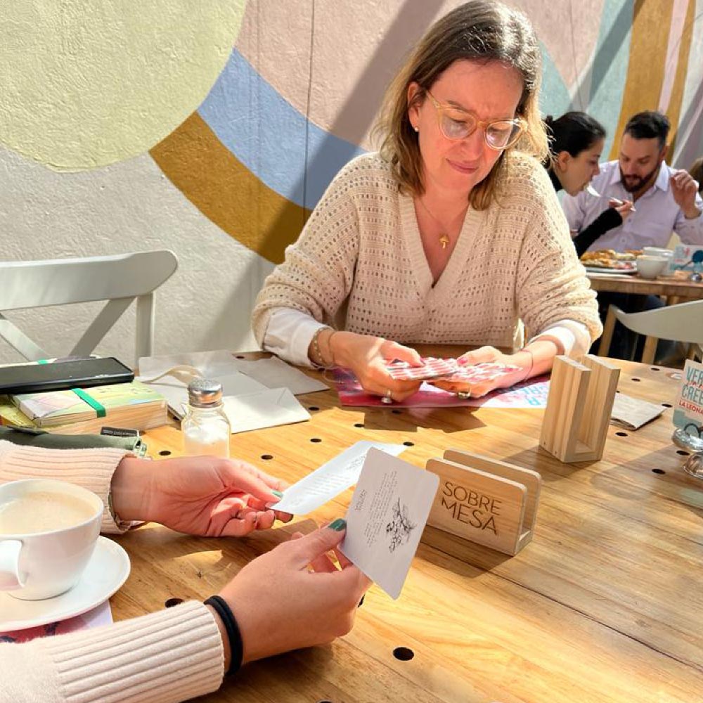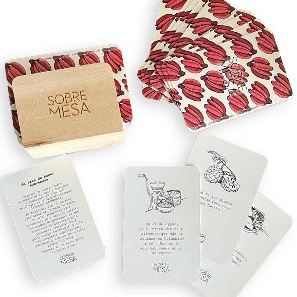 Esta es una baraja que reune a grandes y chicos a conversar, a continuar alimentando el alma con palabras al tiempo que conocemos la geografía, agricultura y gastronomía colombiana. Compartir experiencias y anécdotas de nuestra propia historia. Cartas 12 x 8 cm en base de madera.