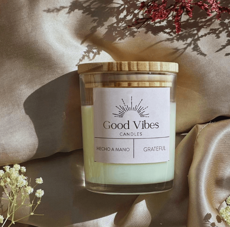 El agradecimiento, como el aroma de nuestra vibe, crea calidez y bienestar. Nos enseña a valorar lo que tenemos y a encontrar belleza en los momentos difíciles. Agradece la claridad que surge de los desafíos, impulsándote a crecer. Vela aromática de cera vegetal en vidrio transparente y tapa de madera, sus dimensiones son 7x9cm y tiene una capacidad de 140gr. ¡Descubre la magia del agradecimiento con nuestras velas aromáticas, y deja que su fragancia te inspire a vivir con gratitud y plenitud cada día! Este producto se maneja con personalización como: -Logo de la empresa -Tarjeta con mensaje personalizado -Tiempo de producción 8 días