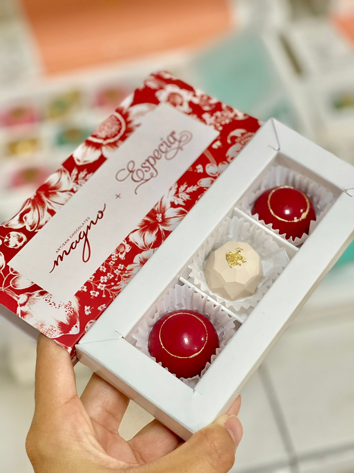 - Personalizamos las cajas a partir de 30 x6 y x12 / 50 cajas x3. Si son menos de 30, serían con empaque y chocolates Magno Chocolates.
