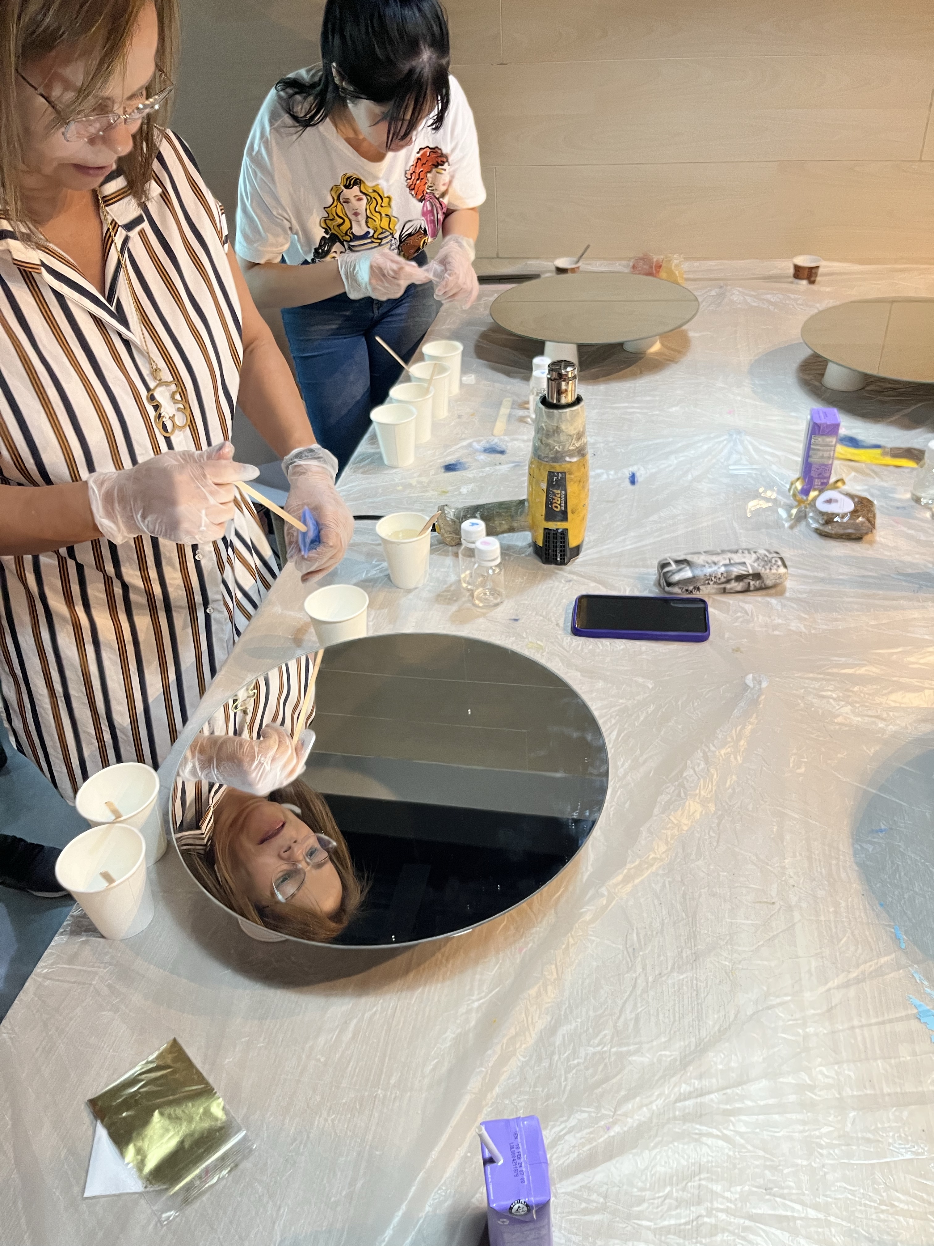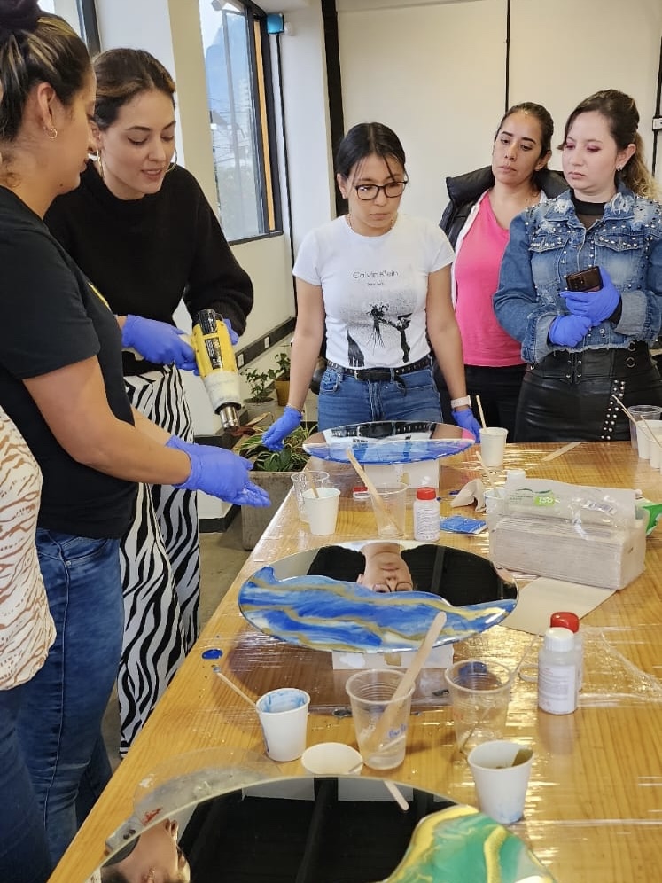 Sumérgete en el fascinante mundo de la resina con la guía experta de Natalia, nuestra talentosa instructora. Aprende a mezclar y utilizar la resina para intervenir un espejo, mientras conectas con tu intuición y desarrollas confianza en tu proceso creativo. Al principio del taller aprenderás un poco del mundo de la resina, que tipos de resinas existen, cómo mezclarla y calcularla, bioseguridad y aplicación. La instructora desarrollará una demostración de la aplicación de la resina sobre espejo para luego ir orientando y asesorando a los participantes en la creación de sus piezas. Aprenderás a pigmentar la resina, hacer efectos con pistolas de calor y añadir elementos decorativos. No es necesario conocimiento ni experiencia para tomar este taller. En caso de haber más personas el valor aumenta
